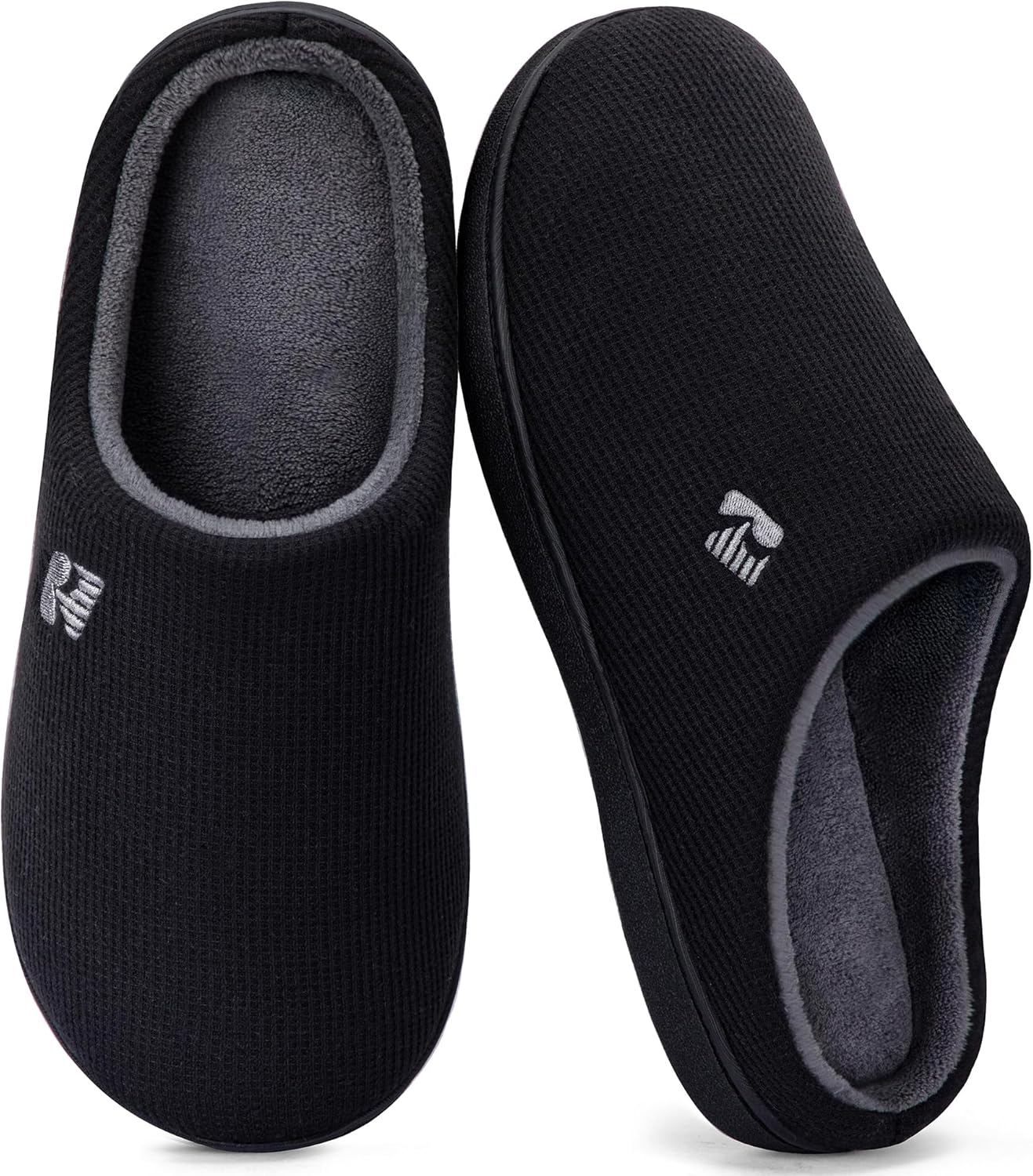 A: Yes, RockDove men’s original two tone memory foam slipper black combinations are typically available, often featuring black with gray or charcoal accents.